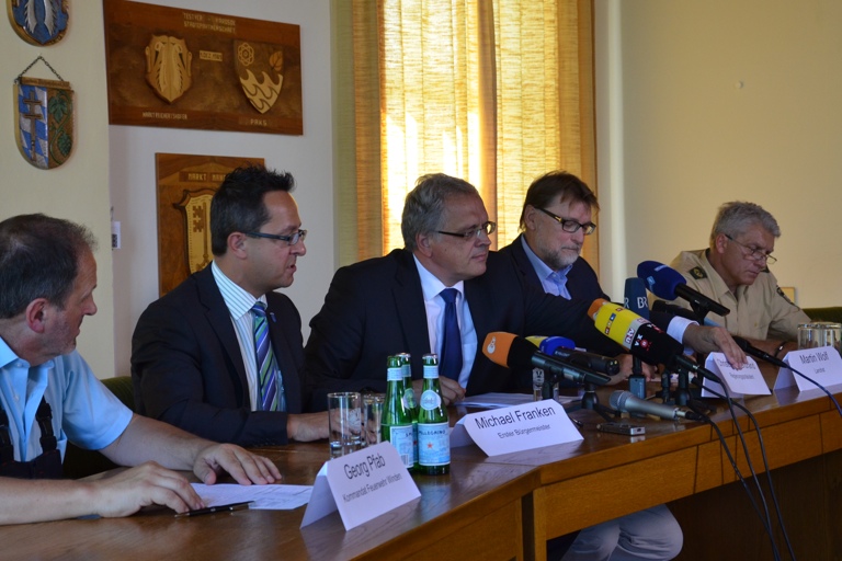 Pressekonferenz nach dem Brandanschlag auf die künftige Asylbewerber-Unterkunft in Winden am Aign