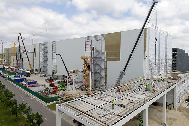 Seit Baubeginn im Mai 2014 waren täglich bis zu 300 Arbeiter auf der Baustelle im Einsatz. Allein für den Rohbau haben sie 20 000 Kubikmeter Beton und 4300 Tonnen Stahl verbaut. Das Gebäude besteht aus einer Stahlverbund‑Konstruktion und ausbetonierten Stahlstützen. Die 324 Meter lange, nur 36 Meter breite Halle bietet dadurch mehr Platz für die Lackieranlagen. Diese werden in den kommenden Monaten aufgebaut und erprobt, zudem wird das Gebäude innen und außen fertiggestellt.