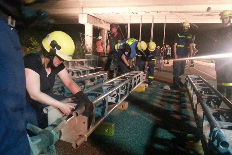 Das THW war von gestern Abend bis heute Mittag im Einsatz, um die Brücke durch eine Spezialkonstruktion zu stützen.