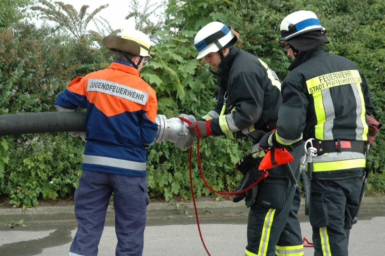 Insgesamt stellten sich diesmal in Pfaffenhofen drei Löschgruppen der Prüfung in der so genannten Variante 3: „Innenangriff mit Wasserentnahme aus Hydranten.“ Aus Sicht der Wehr war besonders erfreulich, dass unter den 19 Teilnehmer sieben Leute – darunter zwei Jugendfeuerwehrler – waren, die erstmals an der Leistungsprüfung teilnahmen.