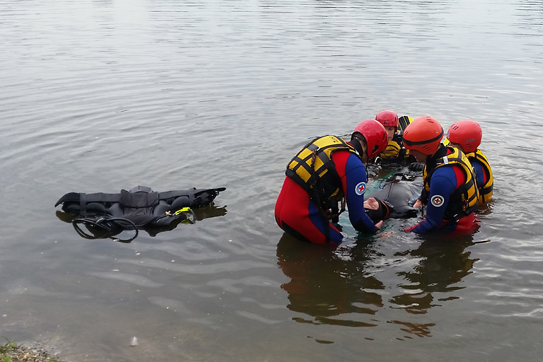 Dieser Lehrgang vermittelt in 24 Unterrichtseinheiten die Grundlagen der Wasserrettung. In dieser Zeit werden theoretische Inhalte wie zum Beispiel Herz-Lungen-Wiederbelebung bei Kindern, thermische Notfälle (also hitze- oder kältebedingte Notfälle), Retten mit dem Motorboot, Grundkenntnisse in Einsatzführung. Taktik und Tauchen, aber auch der Umgang mit Funkgeräten und Medizin-Produkte-Gesetze gelehrt. Alle Teilnehmer erhalten zudem eine Einweisung in die notwendige persönliche Schutzausrüstung. Der praktische Teil umfasste unter anderem die Rettung mit dem Spineboard, das Retten einer verletzten Person mit dem Motorboot aus der Donau und das Versorgen verschiedenster kleinerer und größerer Verletzungen.