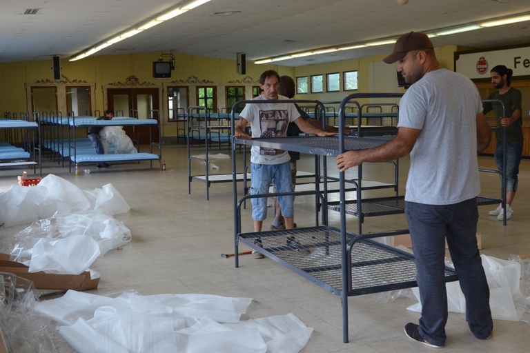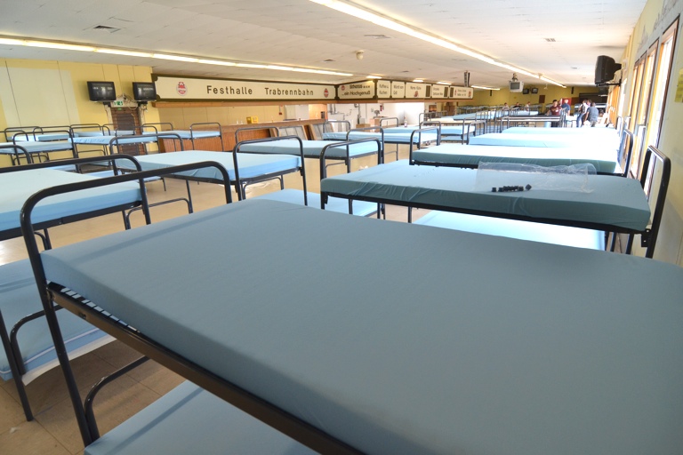 Im ehemaligen Festsaal an der Pfaffenhofener Trabrennbahn werden im Rahmen des Notfallplans Flüchtlinge untergebracht. 75 Doppelbetten wurden aufgestellt.