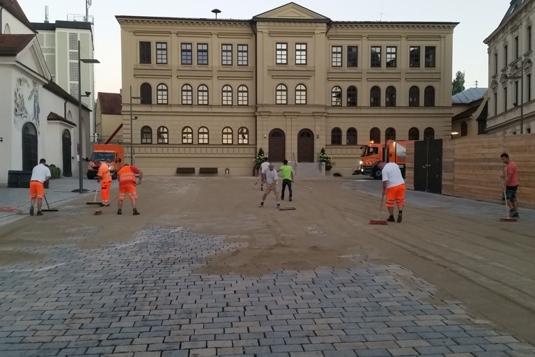 Jedenfalls werden die Arbeiter auch morgen wieder früh aufstehen, um den Unteren Hauptplatz zu „verfugen“. Ihr Einsatz wird bis etwa 10 Uhr dauern.