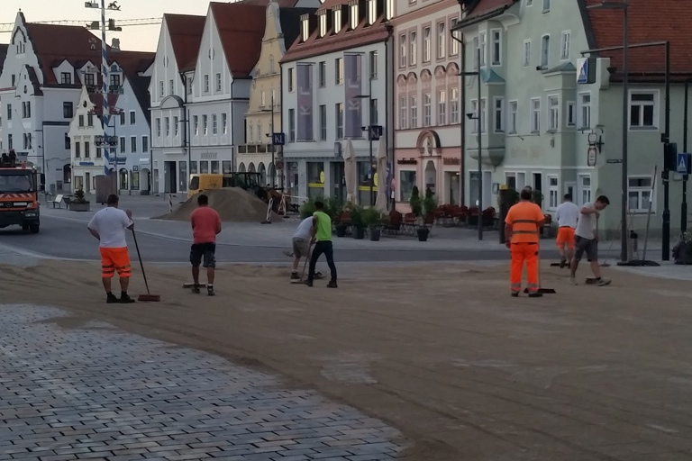 (ty) Noch bevor heute die Sonne aufging, waren Mitarbeiter der Pfaffenhofener Stadtwerke und der Firma Seizmeir aus Mitterscheyern am Hauptplatz schon schwer im Einsatz: Dort werden nämlich aktuell die Fugen verschlämmt.
