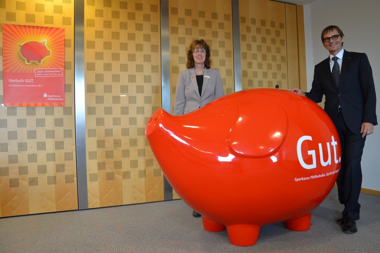 (ty) Vor vier Wochen hatte die Pfaffenhofener Sparkasse zur Bewerbung an der von ihr initiierten, ungewöhnlichen Kunstaktion „tierisch GUT“ aufgerufen. Dabei sollen überdimensionale Sparschweine künstlerisch gestaltet werden. Diese Kunstwerke erhalten danach jeweils einen festen Standplatz vor einer Sparkassen-Geschäftsstelle oder an einem anderen öffentlichen Platz in den Landkreis-Gemeinden. Bewerbungsschluss war gestern – und heute steht schon fest, wer eines der riesigen Sparschweine nach Hause geliefert bekommt, um es zu verzieren.