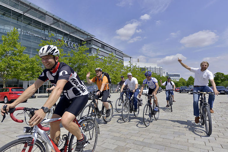 Als lokaler Partner verband Audi das „Stadtradeln“ mit einer Spendenaktion. In den internen sozialen Medien dokumentierten die Mitarbeiter ihre Rad‑Distanzen. Für jeden Kilometer legte das Unternehmen 25 Cent in einen Spendentopf. Am Ende kamen 79 500 Euro zusammen. „Die Aktion war ein riesiger Erfolg. Wir wussten bereits, dass viele unserer Mitarbeiter begeisterte Radfahrer sind. Mit ihrem Einsatz und ihrer Ausdauer haben sie aber alle unsere Erwartungen übertroffen“, sagt Peter F. Tropschuh, Leiter Corporate Responsibility und Politik bei Audi, „das Stadtradeln zeigt, wie viel wir bewegen können, wenn wir uns selbst noch mehr bewegen – besonders für den wichtigen Klimaschutz.“ Auch unter dem Aspekt der Gesundheitsförderung unterstützte das Unternehmen die Aktion.