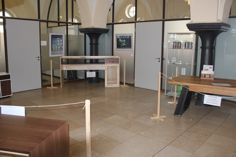 Im Foyer des Pfaffenhofener Rathauses sind bis Donnerstag die Gesellenstücke der Schreiner-Lehrlinge zu sehen