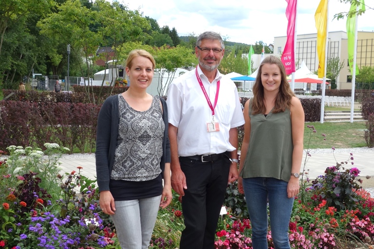 Die KUS-Mitarbeiterinnen Svenja Trzcinski (links) und Katja Streich mit Dr. Michael Neumann, dem Geschäftsführer der „Natur in Alzenau 2015“. (Foto: Natur in Alzenau 2015).