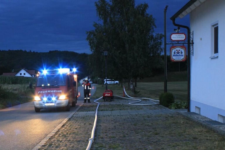 Denn kaum waren ein paar Runden Karten gespielt, ertönte die handbetriebene Sirene, die noch aus den Anfängen der Gerolsbacher Wehr stammt. „Hilfloses Kind auf Floß“, lautete die knappe Alarmmeldung. Beim Eintreffen der jungen Feuerwehrler vor Ort empfing die hysterische Mutter bereits den Gruppenführer des Löschfahrzeugs und zerrte diesen regelrecht aus dem Wagen. Ihr Kind lag auf einem Floß mitten im Siebeneicher Weiher. Der Sprössling wurde erfolgreich gerettet. Doch an Durchamten war nicht zu denken. Denn eine junge Kameradin bemerkte, dass mehr Tretroller an einem Gebüsch lehnten, als Kinder zu sehen waren. Eine zehnminütige Vermisstensuche mit Unterstützung der Wärmebild-Kamera war die Folge, die schließlich ebenfalls erfolgreich abgeschlossen werden konnte. Zwei leichtverletzte und zwei geschockte Kinder wären das Ergebnis dieses simulierten Schwimm-Unfalls in der Realität gewesen.