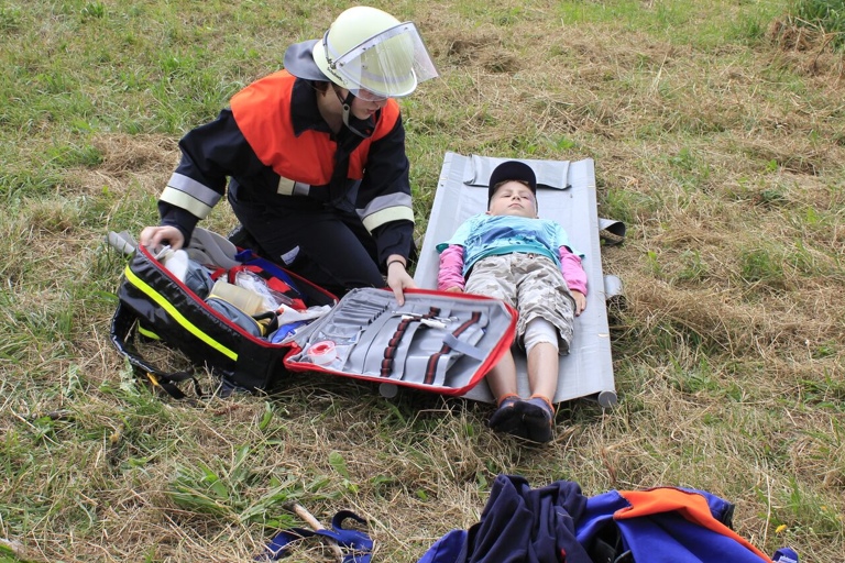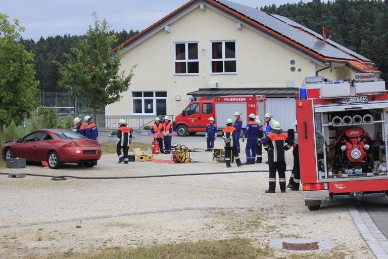 „Verletzte Person in der Baugrube eines Windkraftwerks“, hieß es jetzt. Gut, dass man zuvor einen solchen Einsatz noch durchgenommen und geübt hatte. Die Nachwuchs-Feuerwehrler zeigten, dass sie gut aufgepasst hatten, lieferten eine einwandfreie Rettungsleistung ab und konnten nach getaner Arbeit wieder abrücken. Nach dieser neuerlichen Aufregung gab es erst einmal Kaffee und Kuchen und die Teenager konnten gemütlich ratschen und die ersten Stunden ihrer Schicht verarbeiten. Der Puls war vermutlich gerade erst wieder runtergefahren, da heulte aber schon wieder die Sirene: Verkehrsunfall mit eingeklemmter Person. Auch bei diesem „Einsatz“ agierten die jungen Feuerwehrler besonnen und fachmännisch korrekt, wie ihnen attestiert wurde.