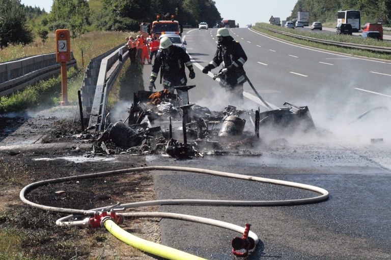 Brennender Wohnwagen legt A9-Verkehr lahm