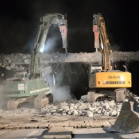 So ging es heute Nacht mit dem maroden Teil der Brücke über die Staatsstraße 2232 bei Uttenhofen zu Ende