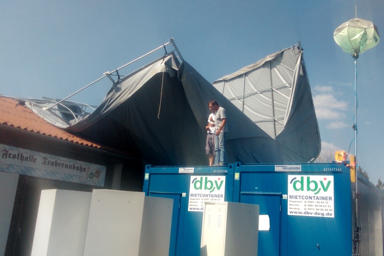 An der Pfaffenhofener Trabrennbahn: Windhose hob Zelt aus der Verankerung und schmetterte es auf das Hallendach, Spinde fielen um – glücklicherweise wurde niemand verletzt