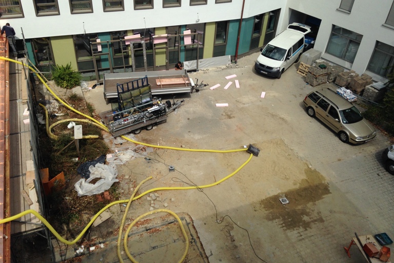 Die Arbeiten im Rahmen der Generalsanierung laufen. Zum Schluss soll dann der Innenhof gestaltet werden.