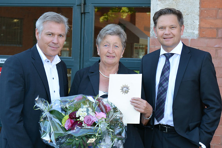Der Chef der Ingolstädter Kripo, Kriminaldirektor Alfred Grob, bedankte sich bei Margarethe Meyer für ihre engagierte Mithilfe bei der Festnahme eines Trickbetrügers. In den Räumen der Kriminalpolizei sprach Grob ihr seine Anerkennung aus und überreichte eine Urkunde, einen Blumenstrauß und einen Geldbetrag.