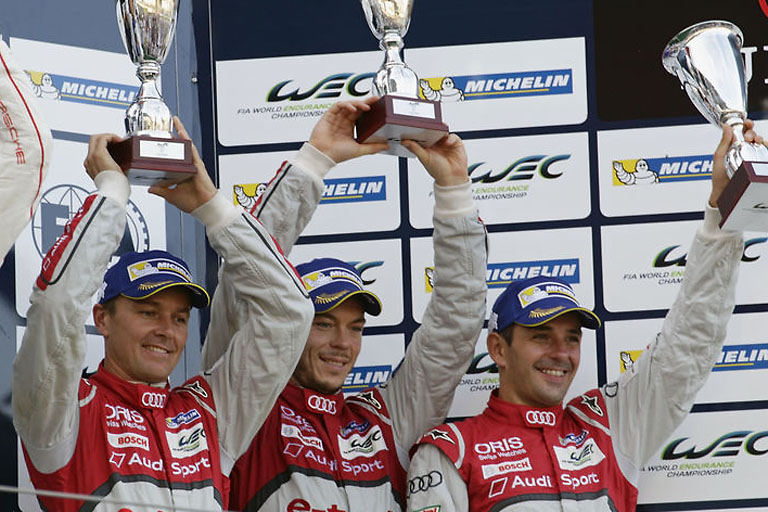 Nach dem vierten von acht Läufen bleiben Fässler/Lotterer/Tréluyer an der Tabellenspitze – wie schon seit dem Saisonauftakt im April. Beim Deutschland-Debüt der FIA-Langstrecken-Weltmeisterschaft WEC musste sich Audi erstmals in diesem Jahr bei einem 6-Stunden-Rennen geschlagen geben. Das Audi-Fahrertrio mit der Startnummer „7“ war vom dritten Platz gestartet, hielt lange die zweite Position, kam am Ende aber hinter zwei Porsche-Sportprototypen ins Ziel. „Bei den heißen Temperaturen von fast 30 Grad Celsius waren wir diesmal nicht so konkurrenzfähig wie zu Saisonbeginn“, resümierte André Lotterer. Teamkollege Marcel Fässler ergänzte: „Wichtig war, in der Tabelle weiterhin einen Vorsprung zu wahren.“ Benoît Tréluyer sagte nach dem vierten Podiumsergebnis in vier Rennen: „Auch wenn wir einmal nicht um den Sieg kämpften, gelang es uns, aufs Podest zu fahren und damit wichtige Punkte zu sammeln.“