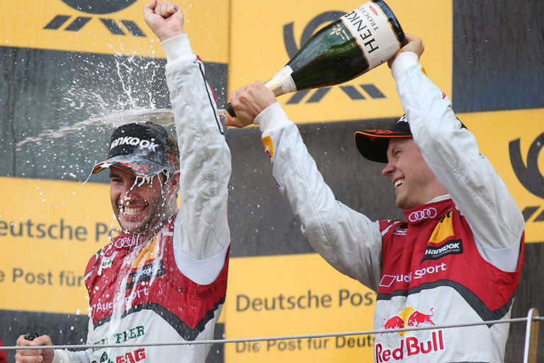 Wie einen Sieg feierte das Audi Sport Team Abt Sportsline den dritten Platz von Mattias Ekström. Sein Red Bull Audi RS 5 DTM musste nach dem Unfall im ersten Rennen am Samstag über Nacht wieder aufgebaut werden. Zudem wurde der Schwede in der Startaufstellung wegen der Kollision von den Sportkommissaren um drei Positionen zurückversetzt.