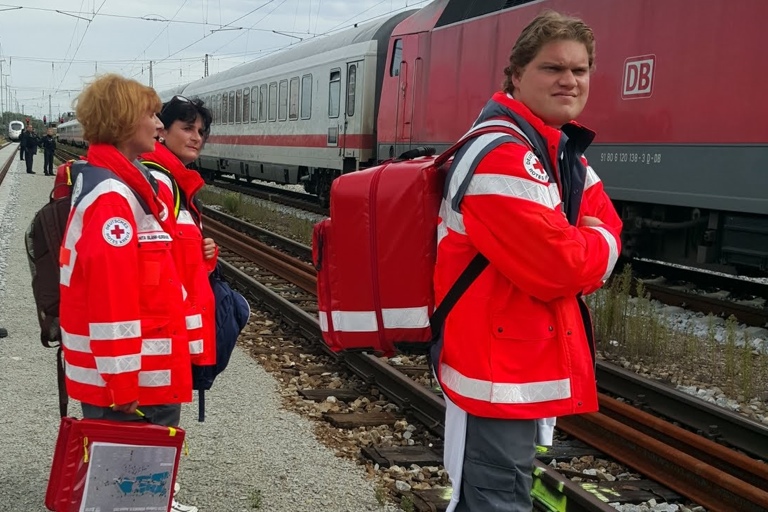 Ehrenamtliche Sanitäter des BRK-Kreisverbands Pfaffenhofen begleiteten einen Zug mit 700 Asylbewerbern von München nach Dortmund