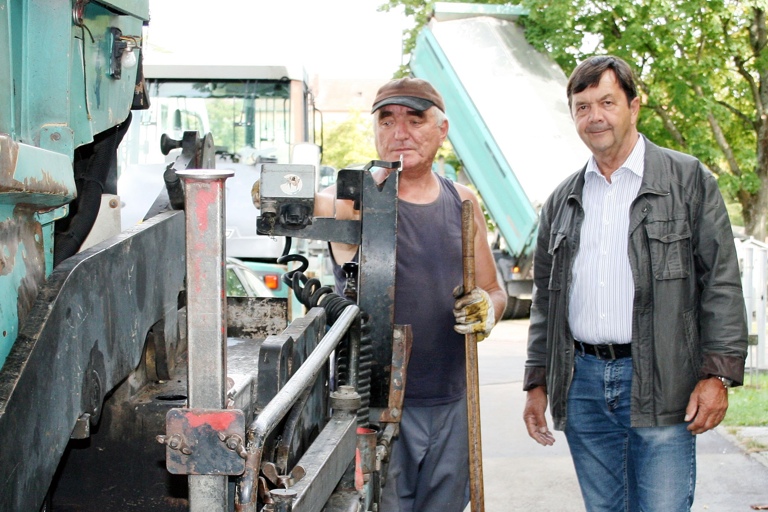 Und so bedient Johann Vogel den Straßenfertiger, wie die Asphaltierungsmaschine im Fachjargon heißt, kümmert sich um das exakte Schneiden der Kanten und zeichnet Schachtaussparungen an. Straßenbau-Trupps sind in Fünf- oder Sechs-Mann-Teams im Einsatz: „Jedes Team organisiert sich selbst und Johann bringt sich bestens ein“, lobt Götz seinen Mitarbeiter. Und wie gefällt dem die neue Aufgabe? „Arbeit ist Arbeit – schaffen musst Du überall“, erklärt der Senior im Team und lässt sich nicht länger von seinen Aufgaben abhalten.