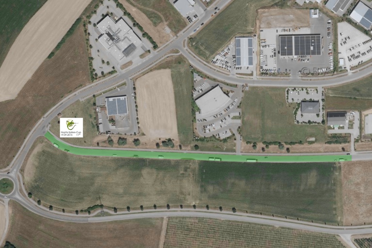Die grüne Markierung zeigt die Rennstrecke im Gewerbegebiet Kuglhof.