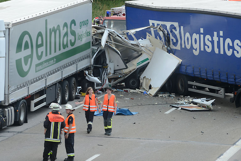 Ein Toter und ein Schwerverletzter nach Unfall mit zwei Lkw, einem Kleintransporter und einem Pkw auf der Autobahn zwischen Manching und Ingolstadt