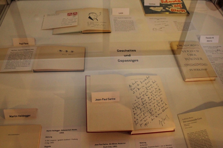 Insgesamt 170 signierte Bücher hat das Ehepaar in seiner Sammlung und 76 davon sind jetzt in der Stadtbücherei ausgestellt. Darunter finden sich so bekannte Namen wie Heinrich Böll und Günter Grass, Max Frisch und Jean-Paul Sartre, Ephraim Kishon und Carl Zuckmayr sowie auch etliche Autoren des Turmschreiber-Verlags – von Eugen Roth über Herbert Rosendorfer und Franz Ringseis bis Kurt Wilhelm.