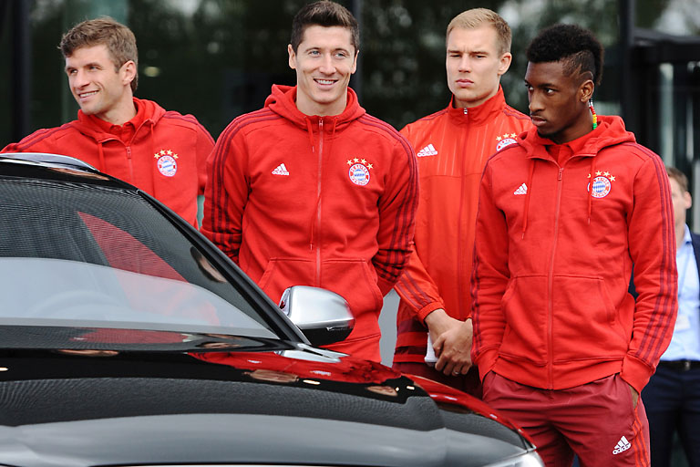 Die Spieler des FC Bayern übernahmen in Neuburg ihre „Dienstfahrzeuge“ von Audi