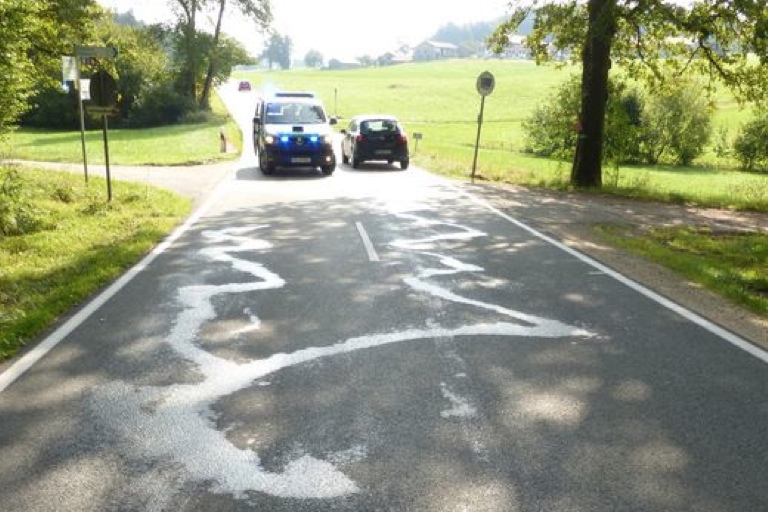 (ty) Ein Unbekannter hat offenbar mit Absicht am 18. September Öl auf einer Kreisstraße zwischen Dorfen und Petting im Raum Traunstein aufgebraucht. Die Polizei hat eine Ermittlungsgruppe gegründet und sucht Zeugen. Am Samstagvormittag, 19. September, wurde per Notruf die Ölspur gemeldet. Erste Ermittlungen ergaben, dass es sich mit an Sicherheit grenzender Wahrscheinlichkeit um eine Vorsatztat handelt. Das Polizeipräsidium Oberbayern-Süd richtete zur Aufklärung eine Arbeitsgruppe mit dem Namen „EG Ölspur“ ein.