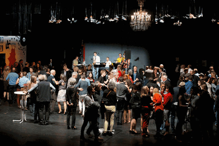 (ty) Das Stadttheater öffnete Samstag Nacht die Türen zu den Werkstätten und den Proberäumen und tanzte sich gemeinsam mit Tanzvereinen und Tanzgruppen sowie 2500 Gästen in die neue Spielzeit. Im Anschluss an den Spielzeitcocktail, bei dem Matthias Zajgier der diesjährige Rotary-Theaterpublikumspreis verliehen wurde, gab es zunächst wieder das traditionelle – inzwischen auf über 25 Meter angewachsene – Buffet. Und ab 21 Uhr Tanz und Musik in allen Räumen.
