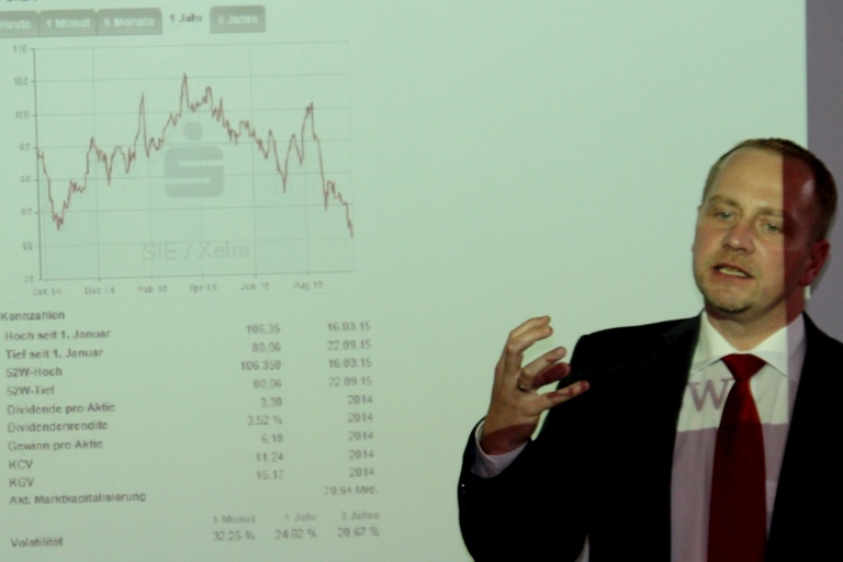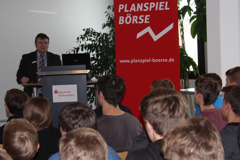 Mit einem Fachvortrag unter dem Motto „Erfolgreich an der Börse investieren“ brachte Jochen Geus von der Landesbank Baden-Württemberg, bei der heutigen Auftakt-Veranstaltung in Pfaffenhofen den rund 40 anwesenden Schülern die Grundbegriffe rund ums Thema Wertpapiere näher. Er gab grundlegende Infos zu Aktien, Fonds sowie anderen Geldanlagen und die Schüler gewannen Einblicke in die Börsenwelt.
