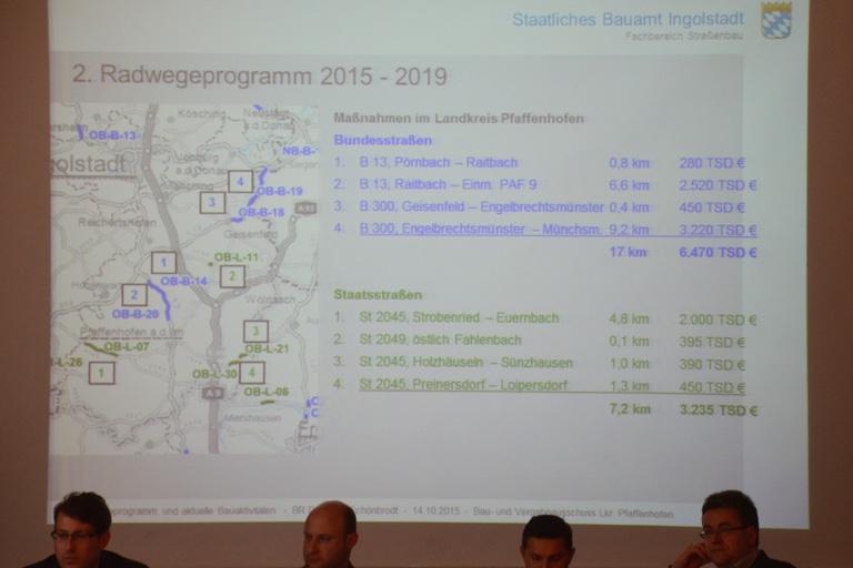 „Wir hätten gerne noch mehr Maßnahmen bekommen“, versicherte Schönbrodt. Doch er führte auch aus, dass der Landkreis Pfaffenhofen mit diesen acht Projekten bereits deutlich über dem Durchschnitt bedient wird. Bayernweit finanziert der Freistaat im Rahmen des Programms „Nachträglicher Anbau von Radwegen an Bundes- und Staatsstraßen“ insgesamt 186 Projekte entlang von Bundesstraßen für etwa 75 Millionen Euro sowie 117 Vorhaben an Staatsstraßen für insgesamt rund 50 Millionen Euro. Im Schnitt komme jeder bayerische Landkreis in den Genuss von 2,6 Projekten an Bundes- und 1,6 Projekten an Staatsstraßen – im Kreis Pfaffenhofen sind es jeweils vier.