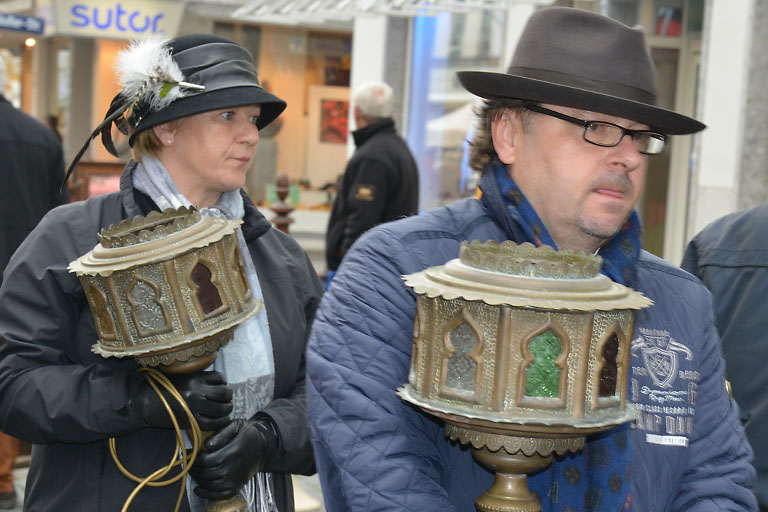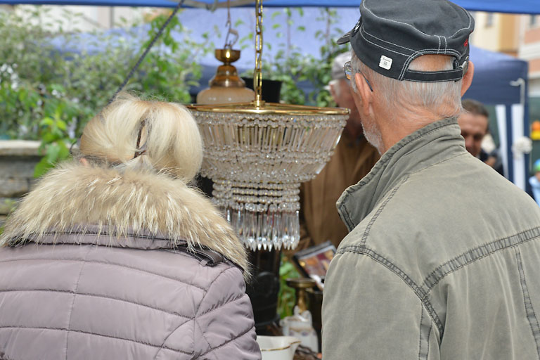 In dicke Mäntel eingemummt warten die Standbetreiber auf ihre Kunden. Und die sind heute deutlich dünner gesät als bei den bisherigen Antikmärkten. „Dafür kommt man an die Stände viel besser ran“, meint einer der Marktbesucher. Das ist richtig. An vielen Ständen ist man gar alleine, obschon es deutlich weniger sind als beim letzten Mal.