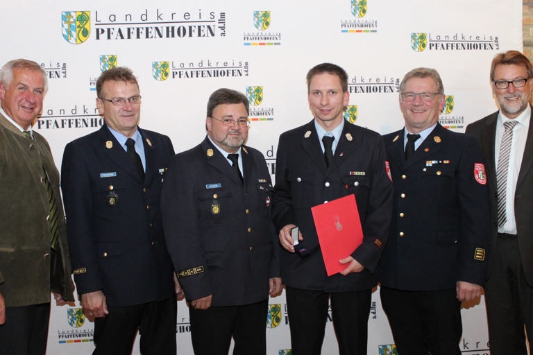 (ty) In Anerkennung seiner Verdienste um den Aufbau und die Förderung der deutschen Jugendfeuerwehr wurde Kreisbrandmeister Benedikt Stuber mit der Ehrennadel in Silber ausgezeichnet. Der Reichertshausener ist seit dem Jahr 2001 Kreisjugendfeuerwehrwart im Landkreis Pfaffenhofen. „Seit Amtsantritt hat er durch seine hervorragende Zusammenarbeit mit den Feuerwehren und den Jugendwarten des Landkreises die Anzahl der Jugendgruppen und deren Arbeit wesentlich verbessern können“, sagte Landrat Martin Wolf (CSU), der die Auszeichnung zusammen mit Kreisbrandrat Armin Wiesbeck im Auftrag des Präsidenten des deutschen Feuerwehrverbands verliehen hat. Stuber organisiere auch jährliche einen Kreisjugendfeuerwehrtag mit sehr gut gewählten Themen, die regen Zuspruch fänden.