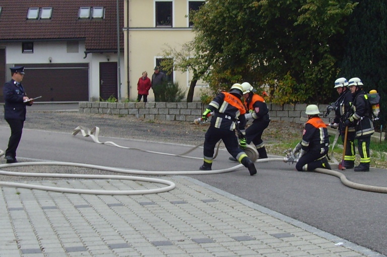 Jetzt mussten die „Großen“ zeigen, was sie draufhaben. Denn zwei Gruppen der Ehrenberger Feuerwehr hatten an diesem Tag eine Leistungsprüfung zu absolvieren. In der vorgeschriebenen Zeit gilt es dabei, bestimmte Aufgaben fachgerecht zu erledigen – und zwar unter den Augen von drei Schiedsrichtern der Pfaffenhofener Kreisbrandinspektion. Die Prüfer attestierten den Floriansjüngern am Ende, sorgfältig, sauber, konzentriert und ohne große Fehler gearbeitet zu haben.