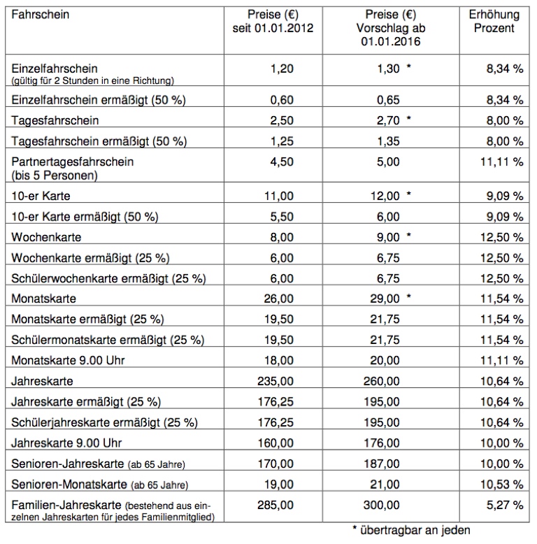 Dann wurde einhellig die Hand gehoben für die neuen Ticketpreise. Zuvor war – ebenfalls einstimmig – eine Änderung bei den Tarifbestimmungen beschlossen worden, wonach nun neben den Schülern auch Studenten, Azubis und Personen, die den Bundesfreiwilligendienst absolvieren, gegen Vorlage des entsprechenden Nachweises einen Preisnachlass bekommen.
