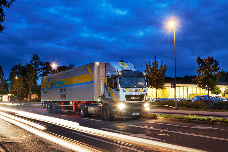 Weitere Pluspunkte der neuen Verkehrssicherheitstechnik: Das Konzept kann kostengünstig und unabhängig vom Hersteller in jedes Lkw-Modell eingebaut werden. „Geplant ist, mittelfristig unsere gesamte Lkw-Flotte mit dem System auszurüsten“, so Anton Klott. Diese umfasse etwa 150 Lkw, die im gesamten südbayerischen Raum unterwegs sind. „Unsere Fahrer sind sehr dankbar für den technischen Assistenten, da er auch für sie einen Zugewinn an Sicherheit darstellt“, weiß Klott. Seit Mai 2015 wird der Abbiegeassistent in neuzugelassenen Lkw der Edeka Südbayern integriert. Aktuell sind 13 Fahrzeuge des Fuhrparks damit ausgestattet.