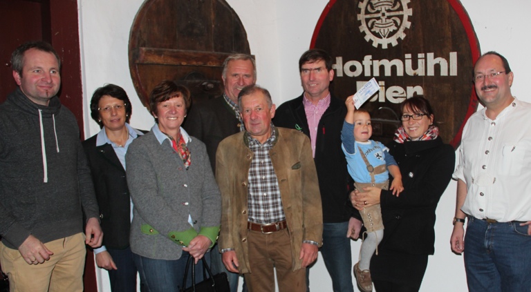 (ty) Anlässlich des 70-jährigen Jubiläums des Bayerischen Bauernverbands (BBV) am 6. September veranstaltete die Geschäftsstelle der Region 10 in Ingolstadt einen Luftballonwettbewerb. Der Gewinner einer Biertischgarnitur und 50 Liter Bier ist der dreijährige Sebastian Vogl aus Egweil, dessen Luftballon bis in die Steiermark flog und innerhalb eines Tages 330 Kilometer zurücklegte. Der Vater des Buben versprach, den Gewinn bis zum 16. Geburtstag seines Sohnes sicher aufzubewahren. Allerdings war es nicht Sebastian selbst, der am Wettbewerb teilgenommen hatte, sondern dessen Oma Christine Vogl. Sie ist die BBV-Seniorenbeauftragte des Kreisverbands Eichstätt und ehemalige Ortsbäuerin von Egweil. Verliehen wurde der Preis im Rahmen einer Brauereibesichtigung der Privatbrauerei Hofmühl. Die spendierte nicht nur den Preis für den Luftballonwettbewerb, sondern auch ein Fest für die rund 40 Helfer beim Tag der offenen Tür.
