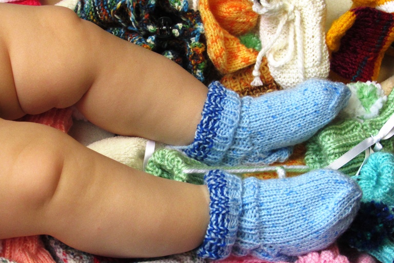 Nach einem Aufruf sind bereits unzählige selbstgestrickte Baby-Söckchen bei der Schwangerschafts-Beratungsstelle abgegeben worden
