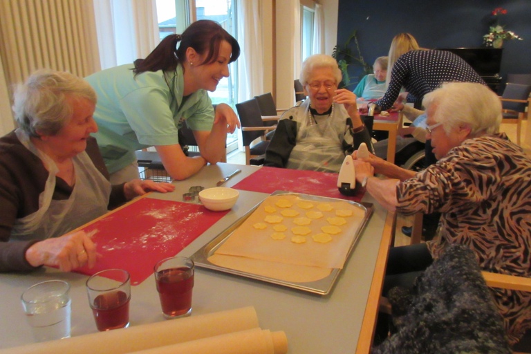 In der Seniorenanlage in Manching wurde gemeinsam mit den Heimbewohnern fleißig gebacken, danach gesungen und Adventsgeschichten vorgelesen. Unterstützt wurde diese Aktion von drei Audi-Mitarbeiterinnen. Beim BRK-Haus der Senioren in Wolnzach stand zunächst ebenfalls das Plätzchenbacken im Mittelpunkt. Danach schmückten drei Audi-Mitarbeiterinnen noch die Gänge der Einrichtung, um die Adventszeit einzuleiten.