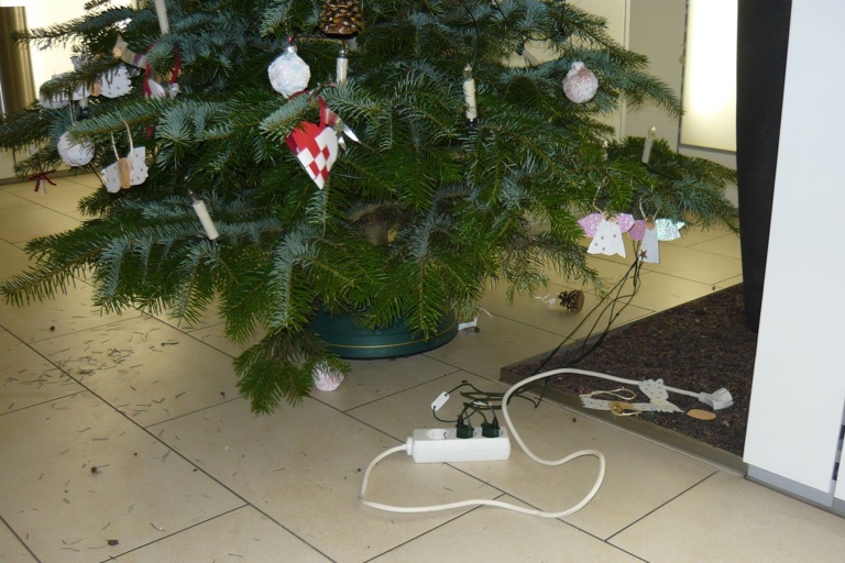 Der mit einem Kapuzenpulli vermummte Dieb marschierte also in die Bank-Filiale und nahm den Baum an sich. Als er dann aber mitsamt der Beute weglaufen wollte, übersah er scheinbar, dass das Kabel der Christbaum-Beleuchtung noch mit der Steckdose verbunden war. Unsanft gebremst durch diesen plötzlichen Widerstand riss es den Mann letztlich darnieder beziehungsweise er stolperte über das Kabel und ging zu Boden. „Als er sich wieder aufrappeln konnte, verließ er fluchtartig die Bank, ohne sich weiter um den Baum zu kümmern“, heißt es im Bericht der Polizei.
