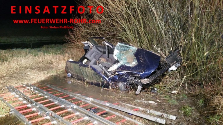 Der Pkw hatte sich mindestens einmal überschlagen und war in einer Buschgruppe liegengeblieben. Das Wrack wurde nach Angaben der Polizei von einem aufmerksamen Zeugen entdeckt, dem der frische Unfallschaden an dem Baum aufgefallen war. Erst, als er die Strecke nochmals abfuhr, entdeckte er den Unfall-Pkw in den Büschen und setzte daraufhin einen Notruf ab.