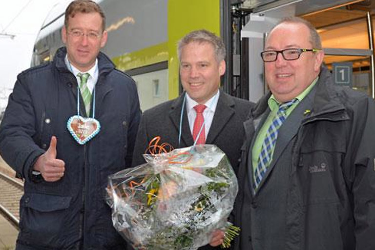 Einen der ersten Züge des neuen Angebots begrüßte Oberbürgermeister Lösel persönlich. „Mit dem heutigen Tag erfolgt eine deutliche Leistungsausweitung, ein großes Plus für alle Kunden im ÖPNV.“ Die Stadt Ingolstadt werde zusammen mit der INVG und den Landkreisen in der Region an einer vollständigen Integration aller Busunternehmen weiterarbeiten. „Ich bin optimistisch, dass es hier 2016 ebenfalls vorangeht, mit dem Audibahnhalt 2019 werden wir zudem eine neue strategische Verbesserung des gesamten ÖPNV erreichen.“