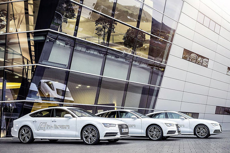 Der Namenszusatz h-tron weist darauf hin, dass das Auto mit Wasserstoff betrieben wird – "h" steht für das chemische Element Wasserstoff. Der Audi A7 Sportback h-tron quattro verkörpert alle Fortschritte bei dieser Antriebstechnologie, die Audi in den vergangenen Jahren am Standort Neckarsulm erzielt hat. Dank der dort geschaffenen Infrastruktur ist eine effiziente Entwicklung des Wasserstoffantriebs möglich.