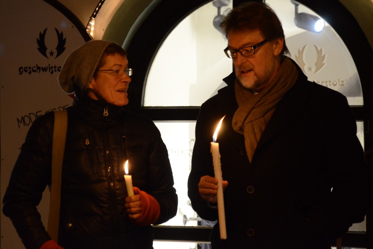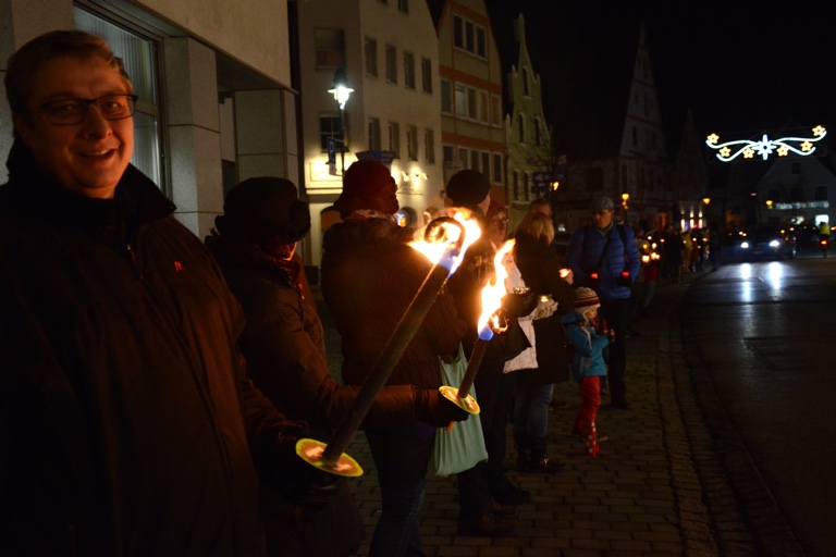 Auch in Pfaffenhofen beteiligten sich heute Abend Hunderte an der Lichterkette, die quer durch Deutschland führen sollte