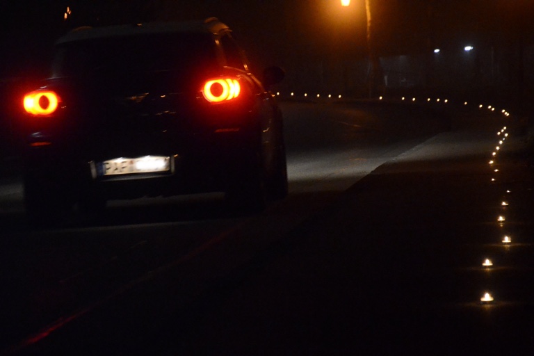 Teelichter auf dem Gehsteig an der Georg-Hipp-Straße.