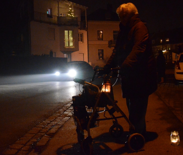 Diese Rentnerin beteiligte sich mit einer Laterne an ihrem Rollator an der Lichterkette.