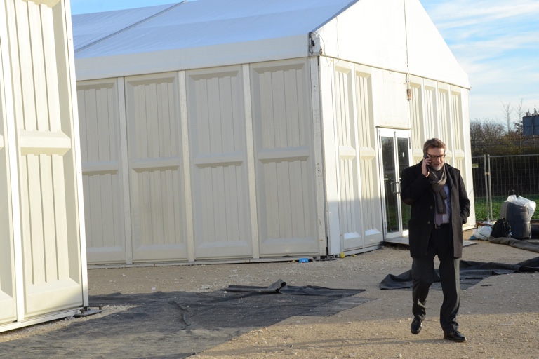 Landrat Martin Wolf (CSU) vor den Hallen.