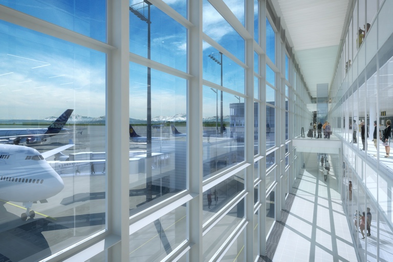 Im neuen Satellitengebäude werde die Wärme oder Kälte in erster Linie durch in den Fußböden verlegte Leitungen in das Gebäude gebracht. Die Lüftung erfolge durch moderne Quelllufttechnik und – wenn es die Außentemperatur zulasse – auf natürlichem Wege durch spezielle Öffnungen im Gebäude. Weiteres Potential zur Energieeinsparung im Satellitengebäude biete das innovative Beleuchtungskonzept: Die LED-Lampen können je nach Lichtbedarf gedimmt werden und sind so angeordnet, dass sie eine optimale Wirkung erzielen.