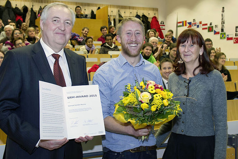 Die Jury des SRM‑Awards würdigte bei der Preisverleihung die herausragende Abschlussarbeit des australischen Siegers. Munro untersuchte, welches Potential für die Bindung atmosphärischen CO2 in den mongolischen Graslandschaften steckt. Dabei gelang es ihm, anhand weitgehend unbeeinflusster Grasböden erstmals eine Referenz für deren maximale Kohlenstoffspeicherkapazität zu erstellen. Böden gelten als größter terrestrischer Kohlenstoffspeicher.