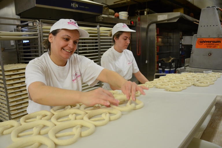 Nach eigenen Angaben beschäftigt der Familienbetrieb aktuell 150 Leute. „Diese Arbeitsplätze werden durch den Neubau gesichert“, betont der Chef. 100 Angestellte arbeiten in den Filialen im Verkauf, fünf in der Verwaltung. Den 45 Angestellten in der Produktion wird man nach der Eröffnung der neuen Firmenzentrale bei der Arbeit über die Schulter schauen können, sagt Wiesender. Denn von einer Art Galerie, auf die man vom Café aus gelangt, gibt eine Glasfront den Blick in die Produktionsräume frei.